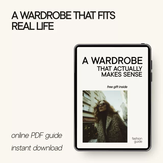 A Wardrobe That Actually Makes Sense is a digital download you can read at your own pace and revisit anytime. If you’re ready to stop overbuying and start building a wardrobe that truly supports your life, download the guide today and take your first confident step forward.