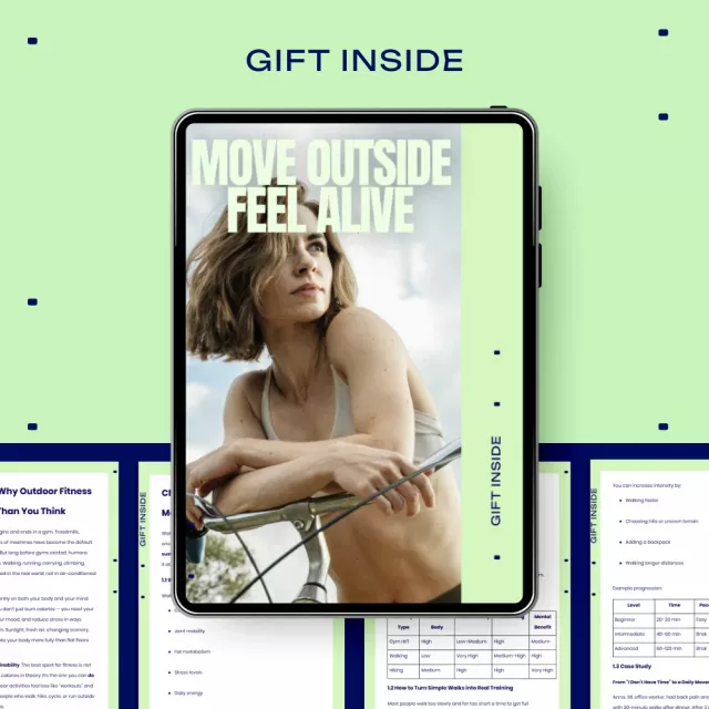 Move Outside Feel Alive is a practical, motivating eBook designed to help you reconnect with movement in the most natural way possible: outdoors. Instead of rigid gym plans or extreme workouts, this guide shows you how to build real fitness through walking, running, cycling, and outdoor sports that actually fit into your life. You’ll learn how to move more, feel stronger, and stay consistent while enjoying fresh air, freedom, and mental clarity.