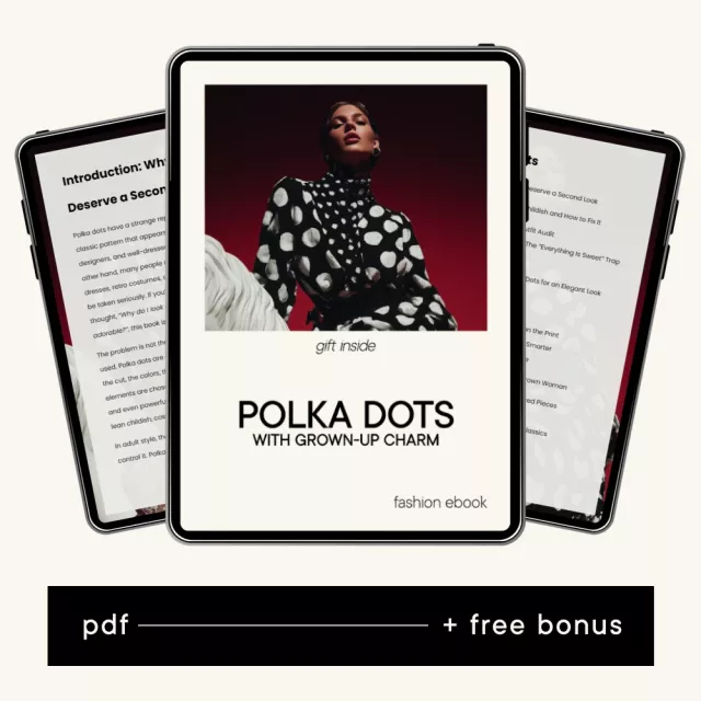 Unlike generic fashion ebooks, this guide focuses on decision-making, not trends. You’ll learn how to evaluate pieces before buying, how to style what you already own, and how to make polka dots look intentional, polished, and age-appropriate. It’s especially helpful if you’ve ever wondered how to wear polka dots without looking childish but couldn’t pinpoint what was going wrong.