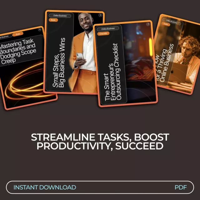 As an entrepreneur, I was constantly juggling tasks and struggling to keep everything on track. This pack has been a lifesaver! The 'Mastering Task Boundaries' guide helped me avoid endless projects, while the Small Steps, Big Business Wins eBook made it easy for me to break down my goals into manageable tasks. Plus, the delegation checklists? Super helpful in freeing up my time for more important business matters. It's not just about managing your tasks – it’s about doing what truly matters!