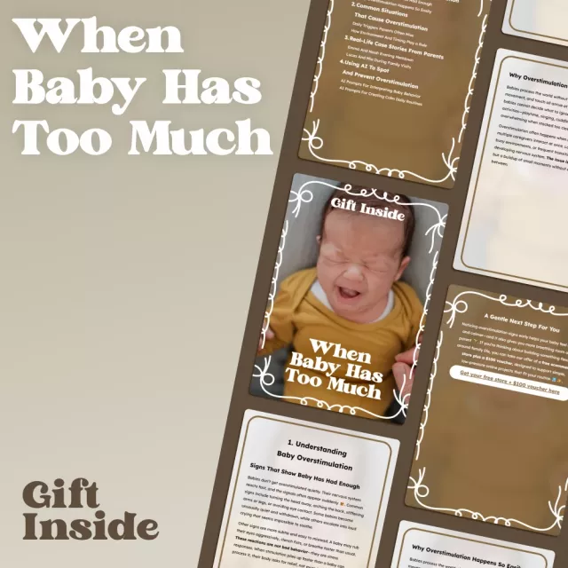 Unlike generic baby guides, When Baby Has Too Much blends real-world parenting stories with innovative AI prompts that help you observe patterns, adjust routines, and prevent overstimulation before it happens. It’s modern, compassionate, and built for real life.